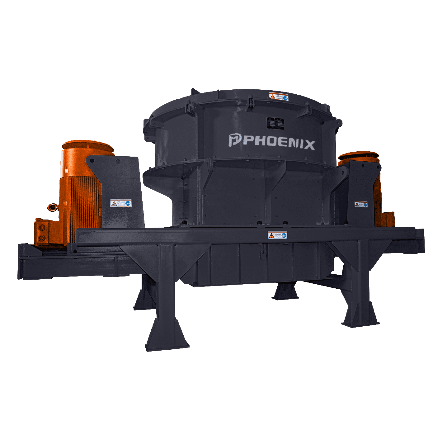 (2)冲击破制砂机。冲击式制砂机是常用的瓜米石制砂机,在制砂生产线中表现突出,采用了石打石或石打铁的破碎腔处理方式,兼具破碎和整形功能,同时还具有中间和周边两种进料方式,能随时转换,生产不同级别的机制砂。