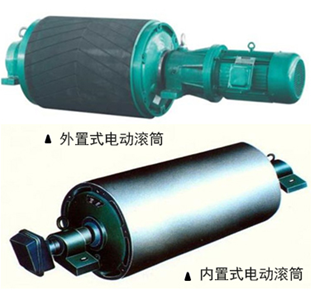 电动滚筒分外置式电动滚筒和内置式电动滚筒,区别在于电机放置的位置不同,外置式是电动机装在滚筒外部,并与滚筒刚性联接,内置式是电机与减速机装在滚筒内部。
